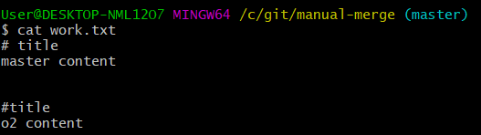 => o2의 work 2 commit과 master의 이전 commit인 work 2 commit을 merge해서 새로운 commit을 만듦