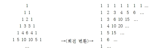 다음과 같은 삼각형을 파스칼의 삼각형이라고 한다.
