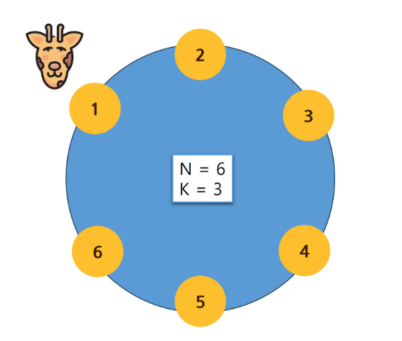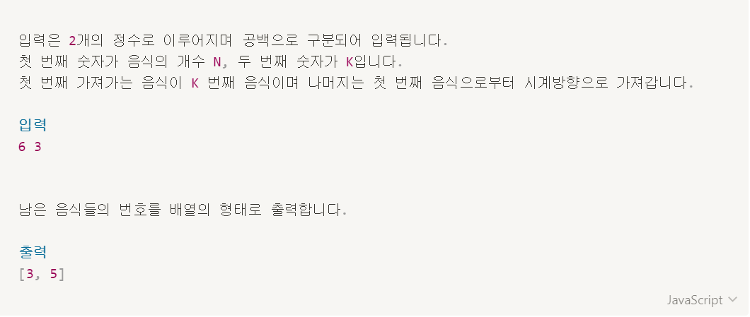 한 개의 음식을 다 먹으면 그 음식의 시계방향으로 K 번째 음식을 먹습니다.