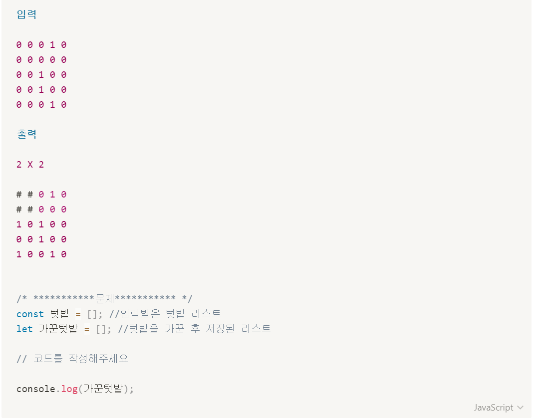 * 2차원 배열인 텃밭 배열을 받아,