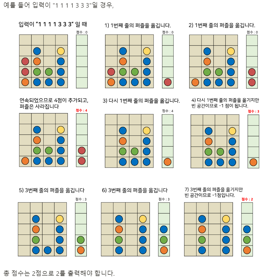 만약 종류가 같은 퍼즐이 연속될 시에 점수가 추가되며 그 퍼즐은 사라집니다.