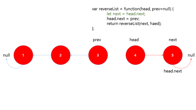 - head.next는 현재 가리키고 있는 다음 노드와의 연결을 끊고, 이전의 노드를 가리킨다.