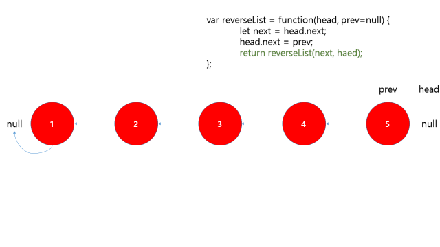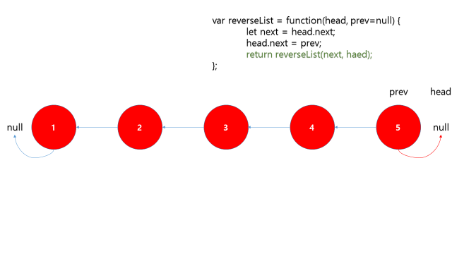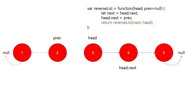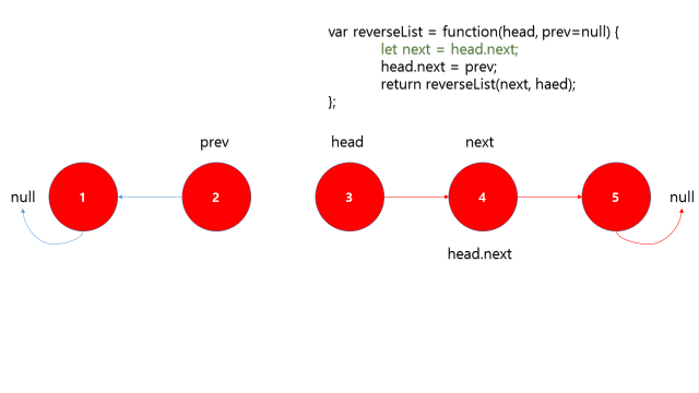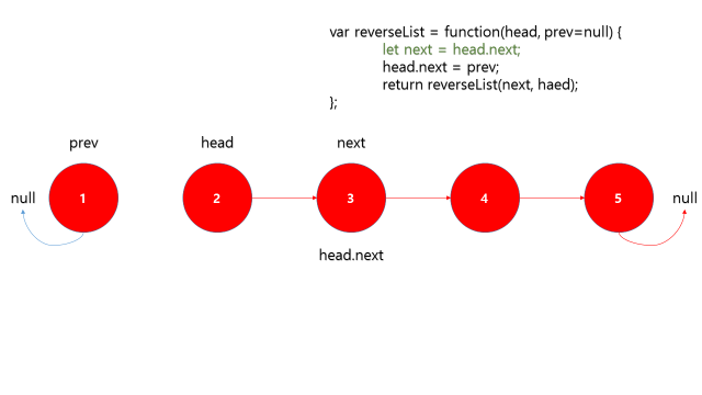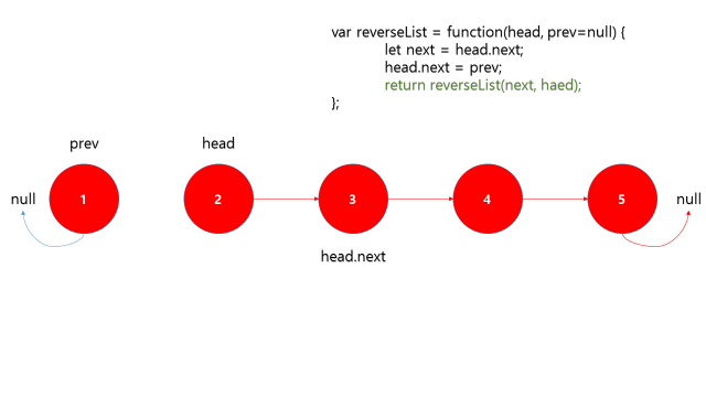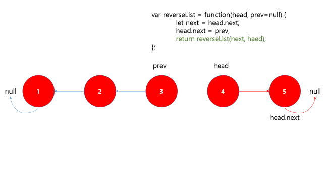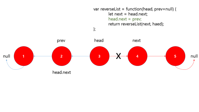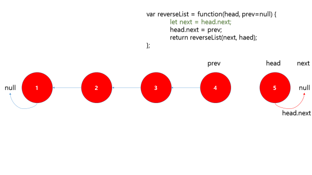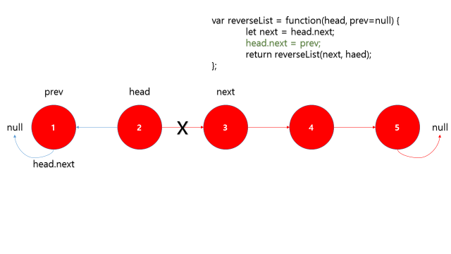 - head.next는 현재 가리키고 있는 다음 노드와의 연결을 끊고, 이전의 노드를 가리킨다.
