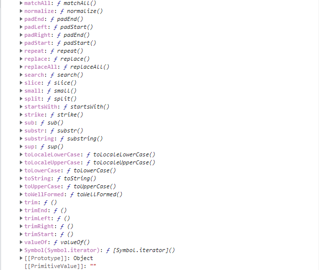 아래는 console.dir(String.prototype)을 한 결과이다. 역시 맨 아래쪽에 존재한다.