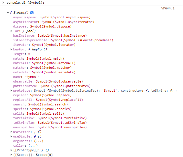 Symbol에는 흔이 "well-known symbol"이라 불리는 몇가지 Symbol이 존재한다. 지금 설명할 Symbol.iterator도 그 중에 하나이다. 아래에 보이는 것들 중에서 length와 prototype을 제외한 것들이 well-known symbol이다.