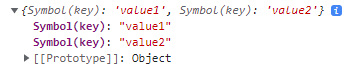 객체에 동일한 key로 값을 초기화할 경우에는 그 key의 value는 계속 덮어씌워지게 된다. 따라서 보통의 경우라면 마지막에 값을 바꿔준 value2로 덮어씌워질 것이다. 하지만 위의 key들은 전부 Symbol형이다. 똑같은 형태로 선언을 해주었지만 Symbol형은 항상 유일무이한 값이기 때문에 obj은 아래와 같은 형태를 지닌다.