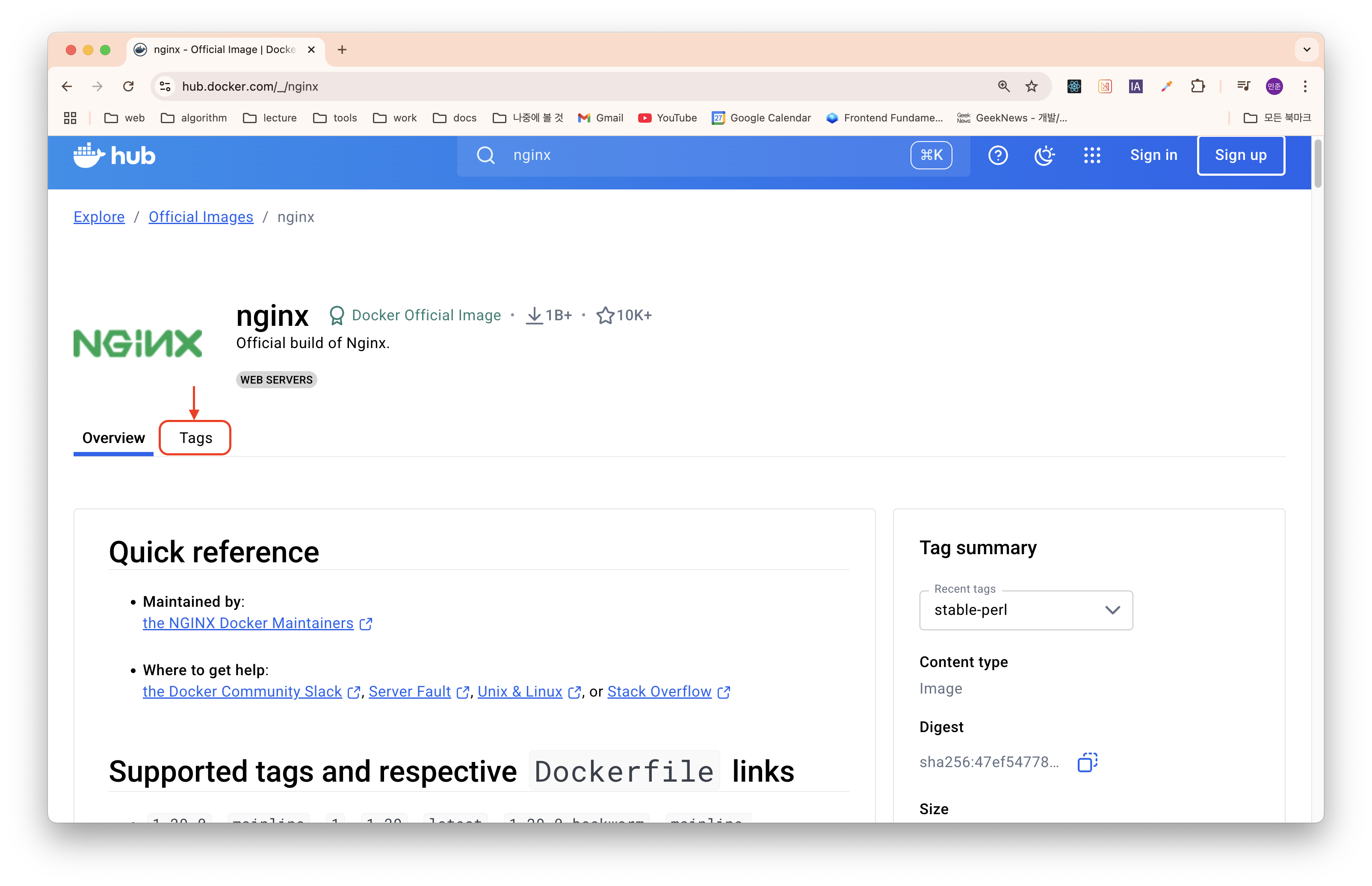 그리고 Tags에서는 이미지의 버전을 확인할 수 있다.