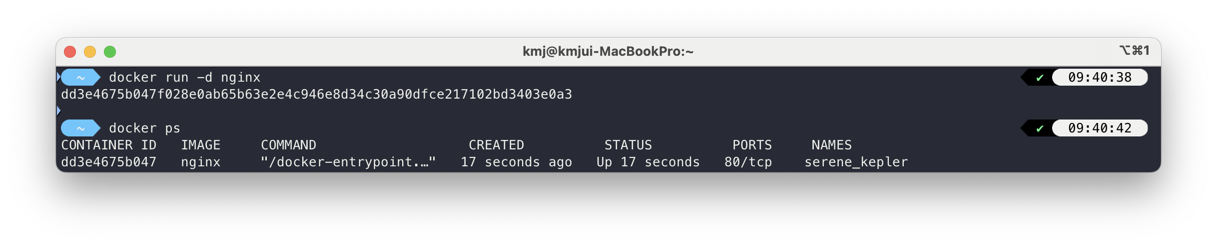 이 때, CONTAINER ID는 다른 컨테이너와 구분이 가는 정도에서 일부만 입력해도 된다.