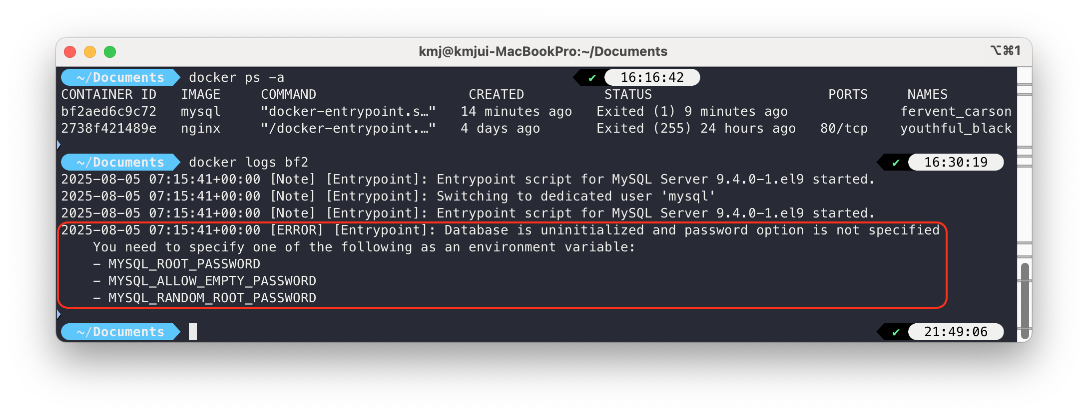 "Database is uninitialized and password option is not specified" 라고 되어있다.