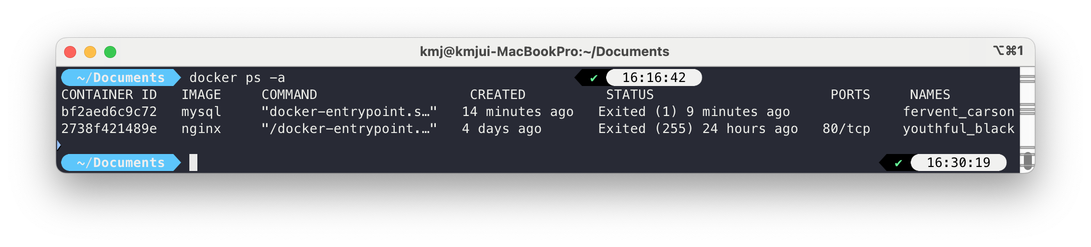 그래서, `docker ps -a`로 모든 컨테이너를 조회해보면,
