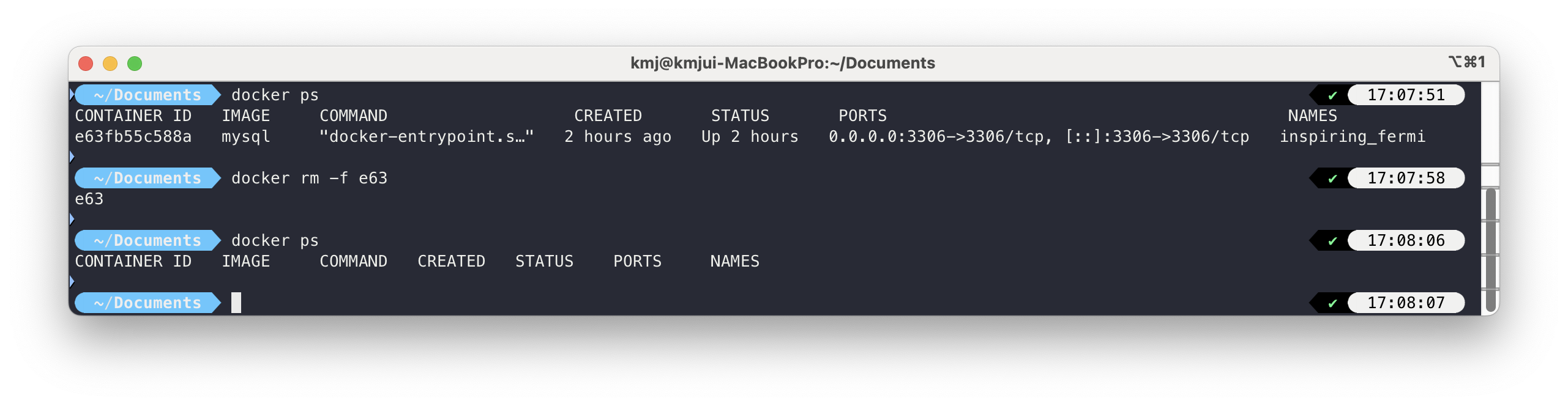 먼저, 컨테이너를 종료시켜줌과 동시에 삭제까지 했다.