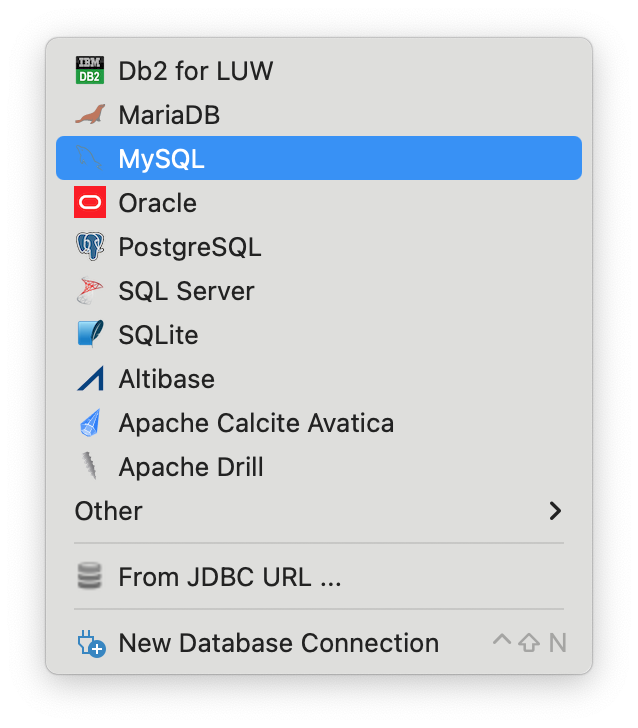 클릭해주면, 다음과 같은 여러 종류의 DB가 뜨는데