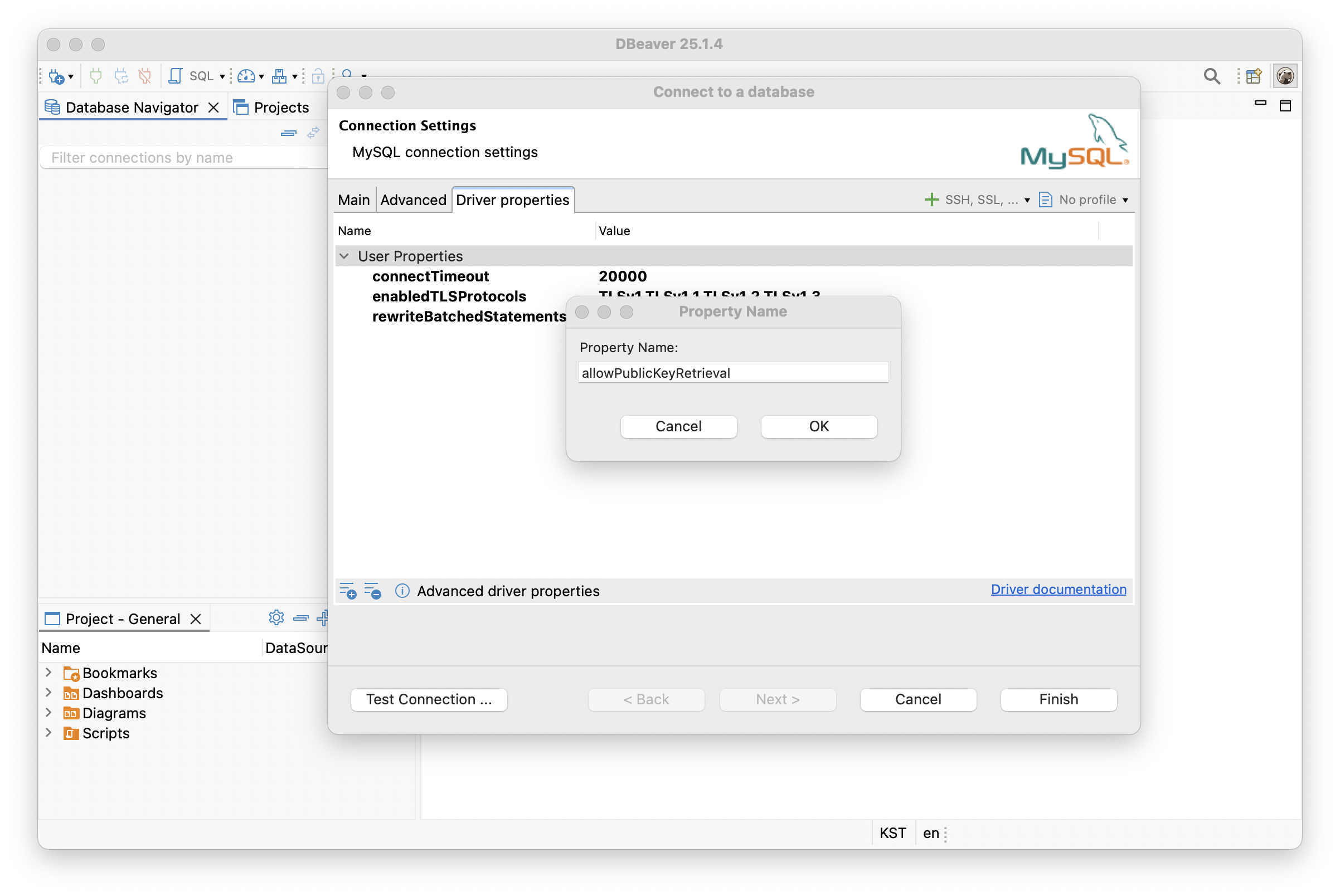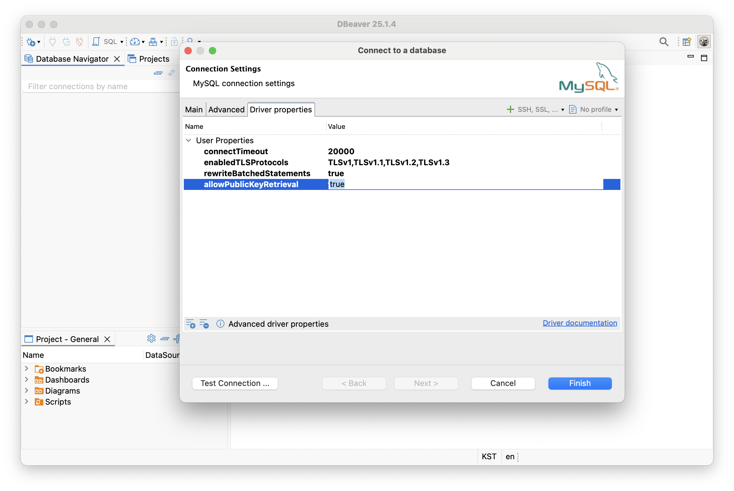 그 다음, 'allowPublicKeyRetrieval' 라는 property를 추가해주면 된다.