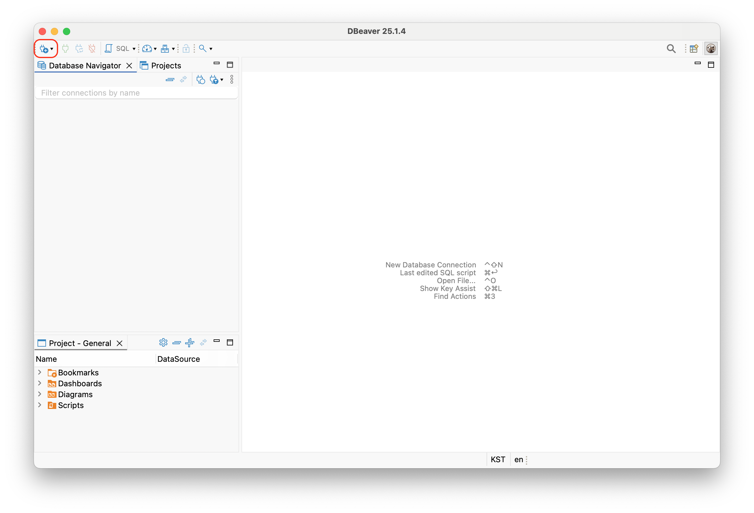 실행하고, 왼쪽 위에 DB를 추가할 수 있는 버튼이 있다.