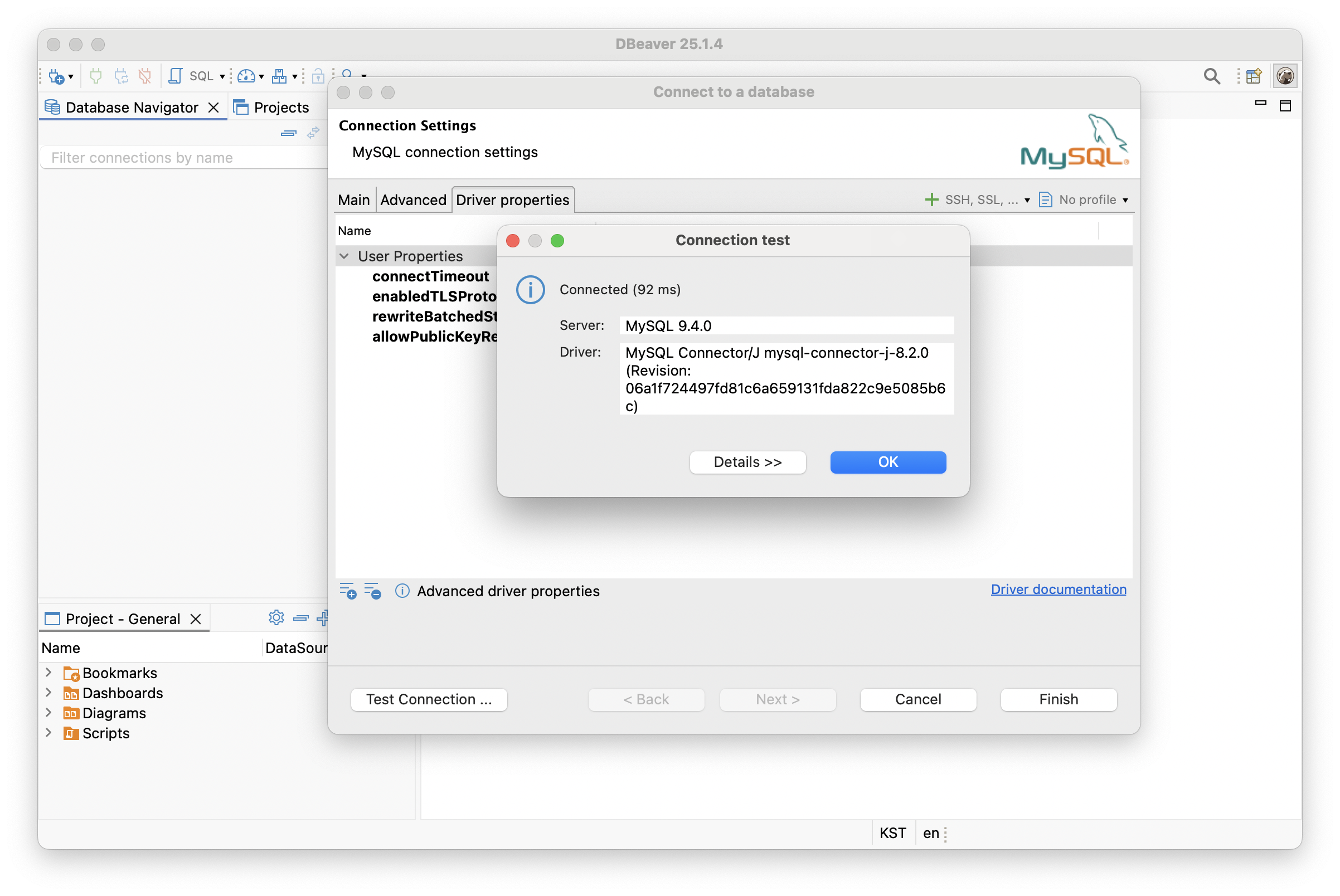 DBweaver에서 다시 'Test Connection'을 해보면,