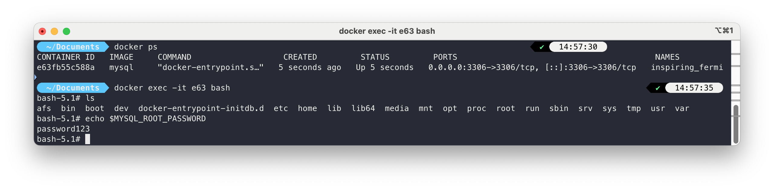 $ docker run --name some-mysql -e MYSQL_ROOT_PASSWORD=my-secret-pw -d mysql:tag