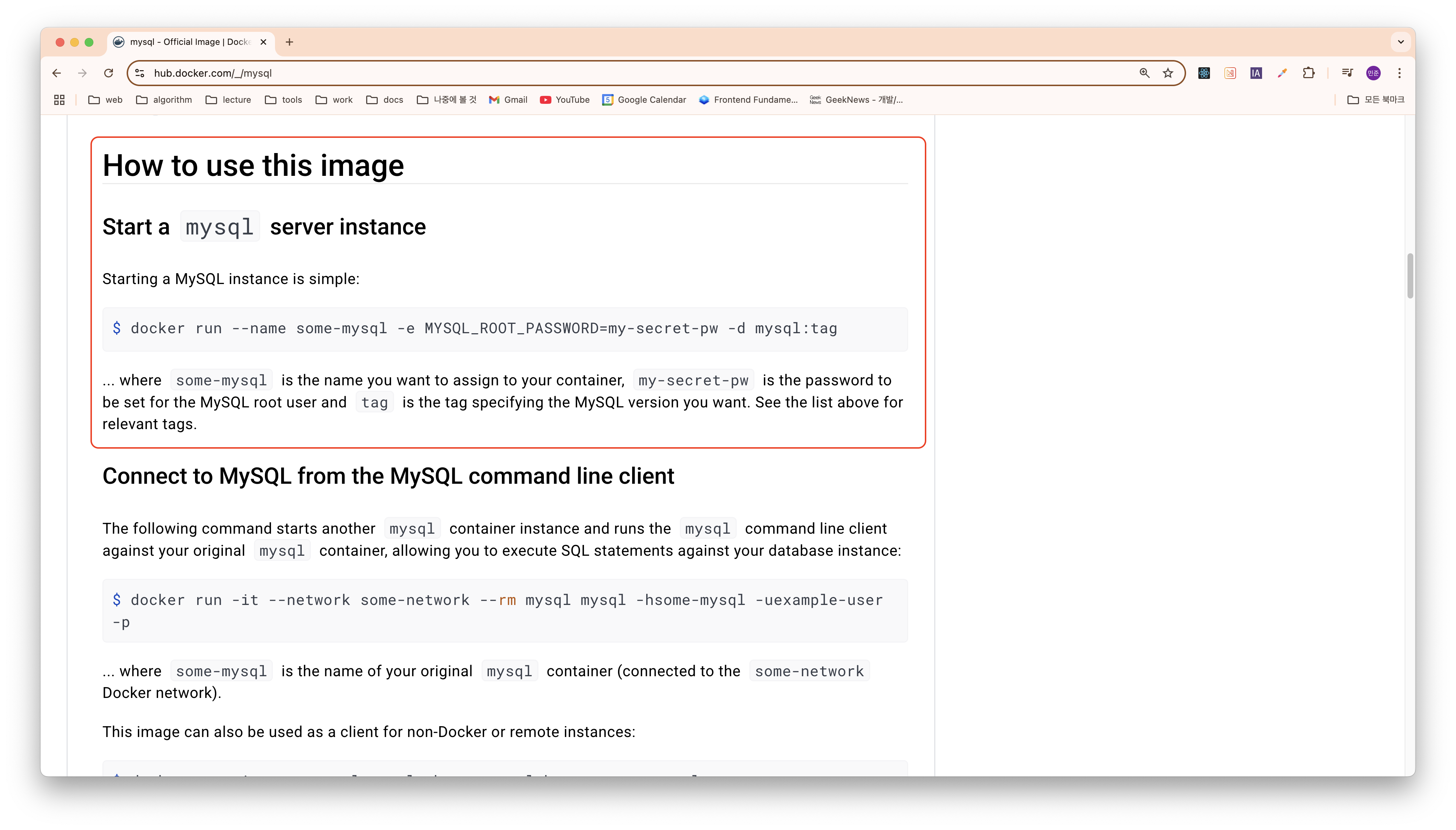 클릭하면, mysql 이미지에 대한 설명이 나와있다.