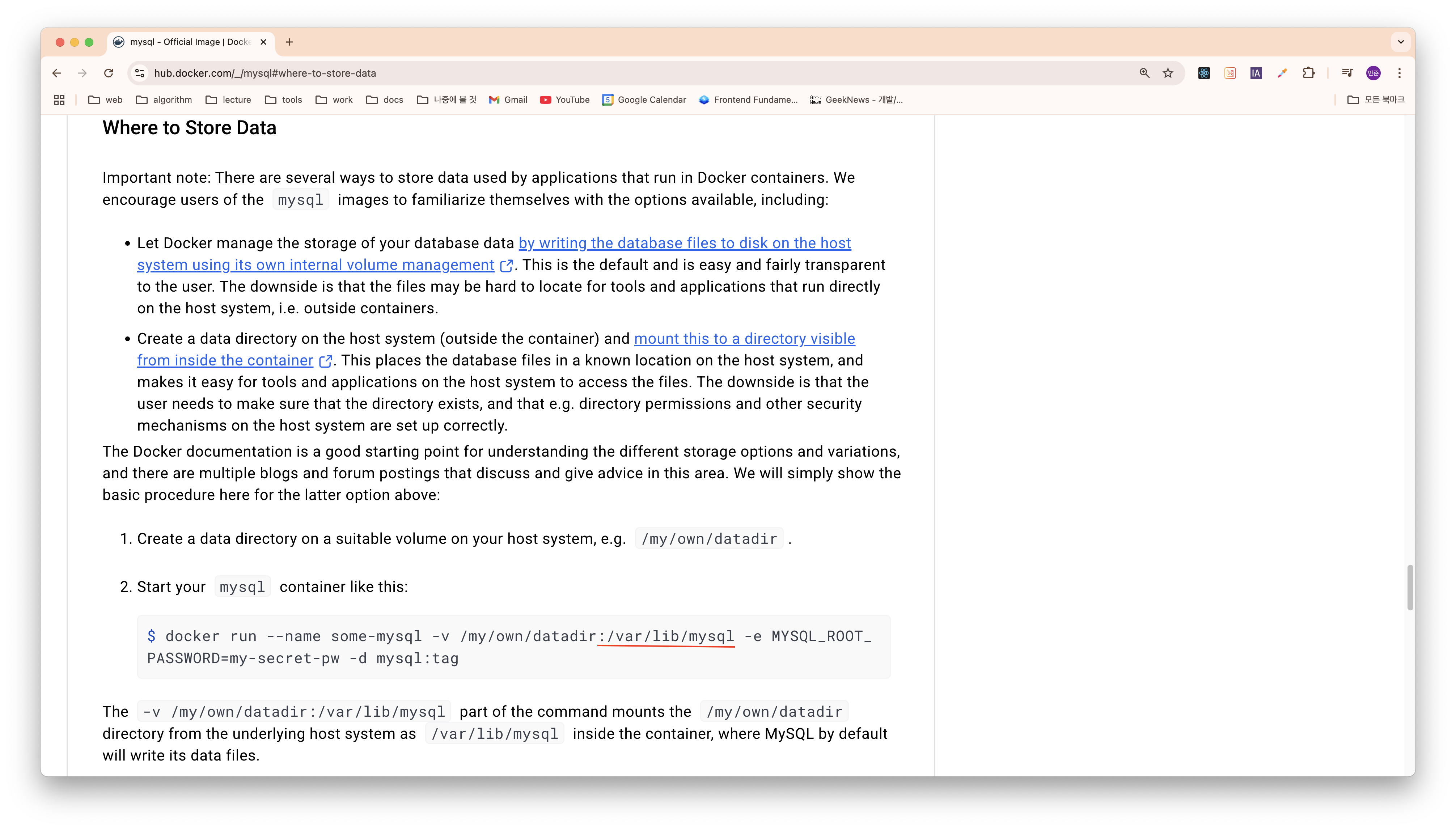 이번에는 MySQL에 대한 데이터 정보를 호스트의 일부 어떤 공간의 데이터로 저장해보려고 한다.