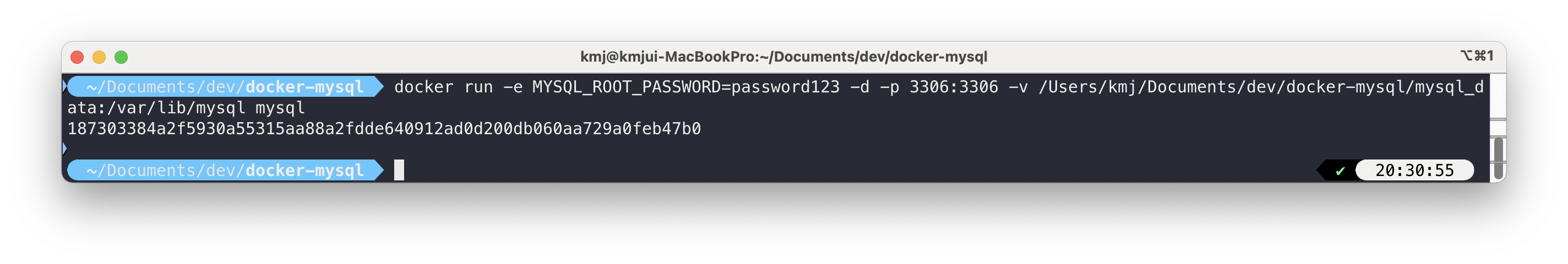 docker run -e MYSQL_ROOT_PASSWORD=[비밀번호] -d -p 3306:3306 -v [데이터를 저장할 경로] mysql