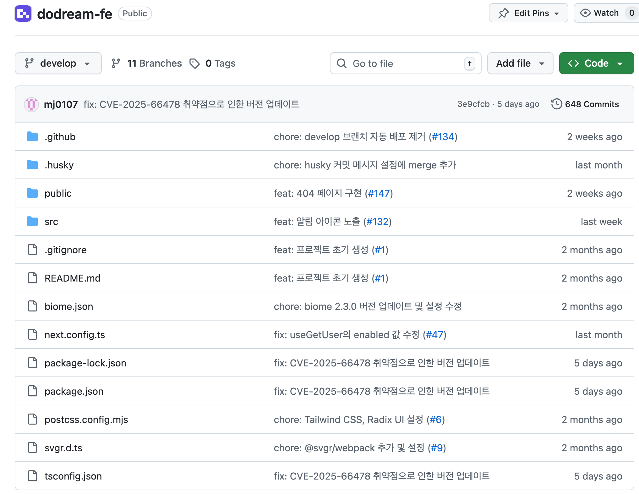 약 한 달 정도의 짧은 시간에도 불구하고 650개정도의 커밋을...