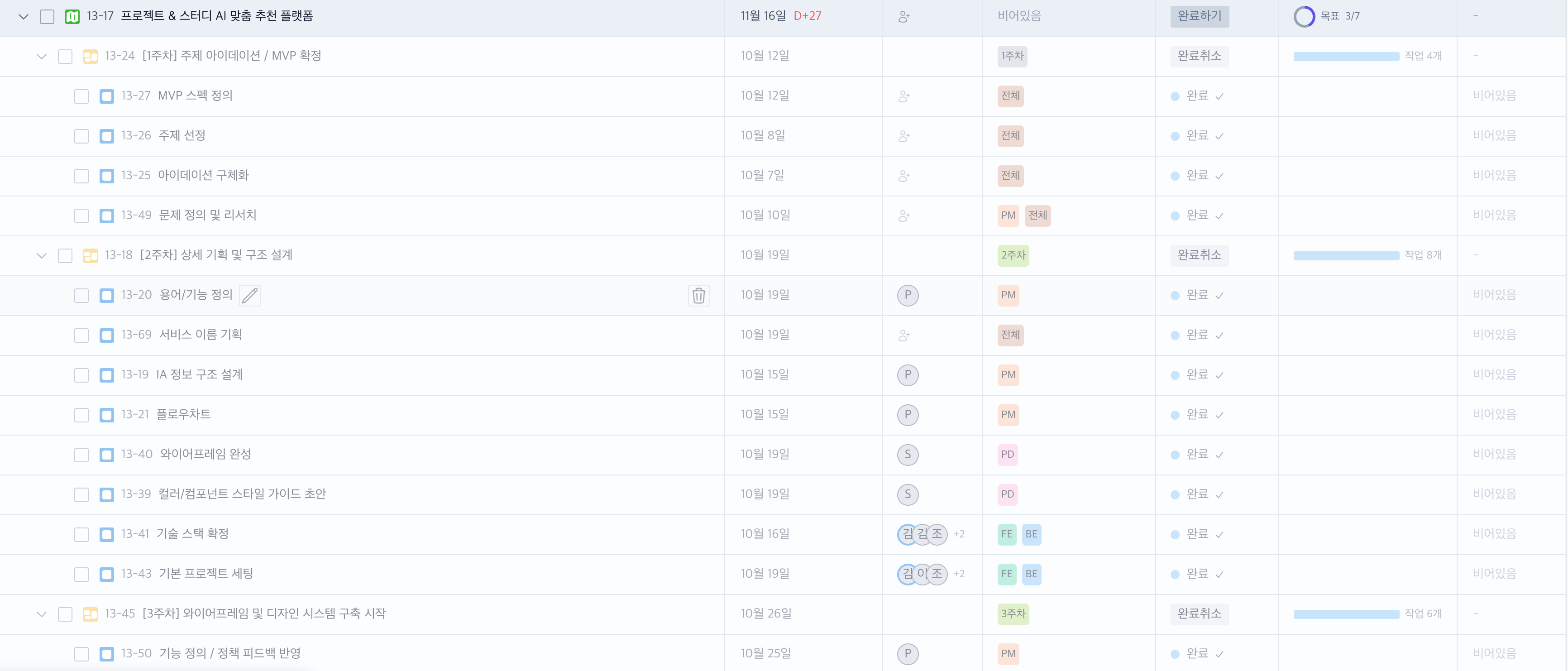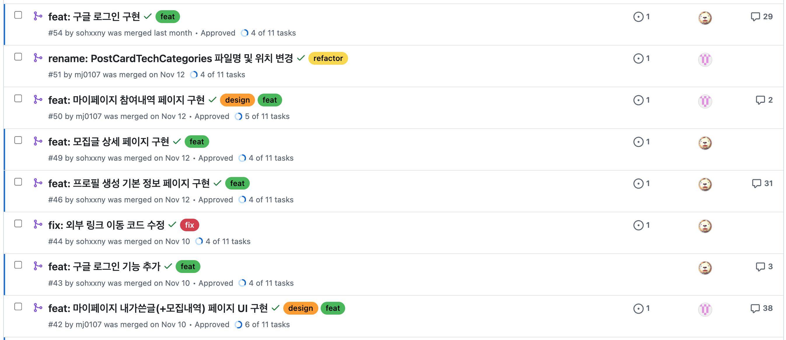 확실히 내가 하고있지 않은 작업 포함 프로젝트 전체의 진행을 트래킹하기 편해진다.