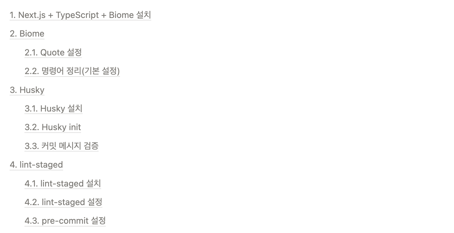 - Linting/Formatting: Biome, husky